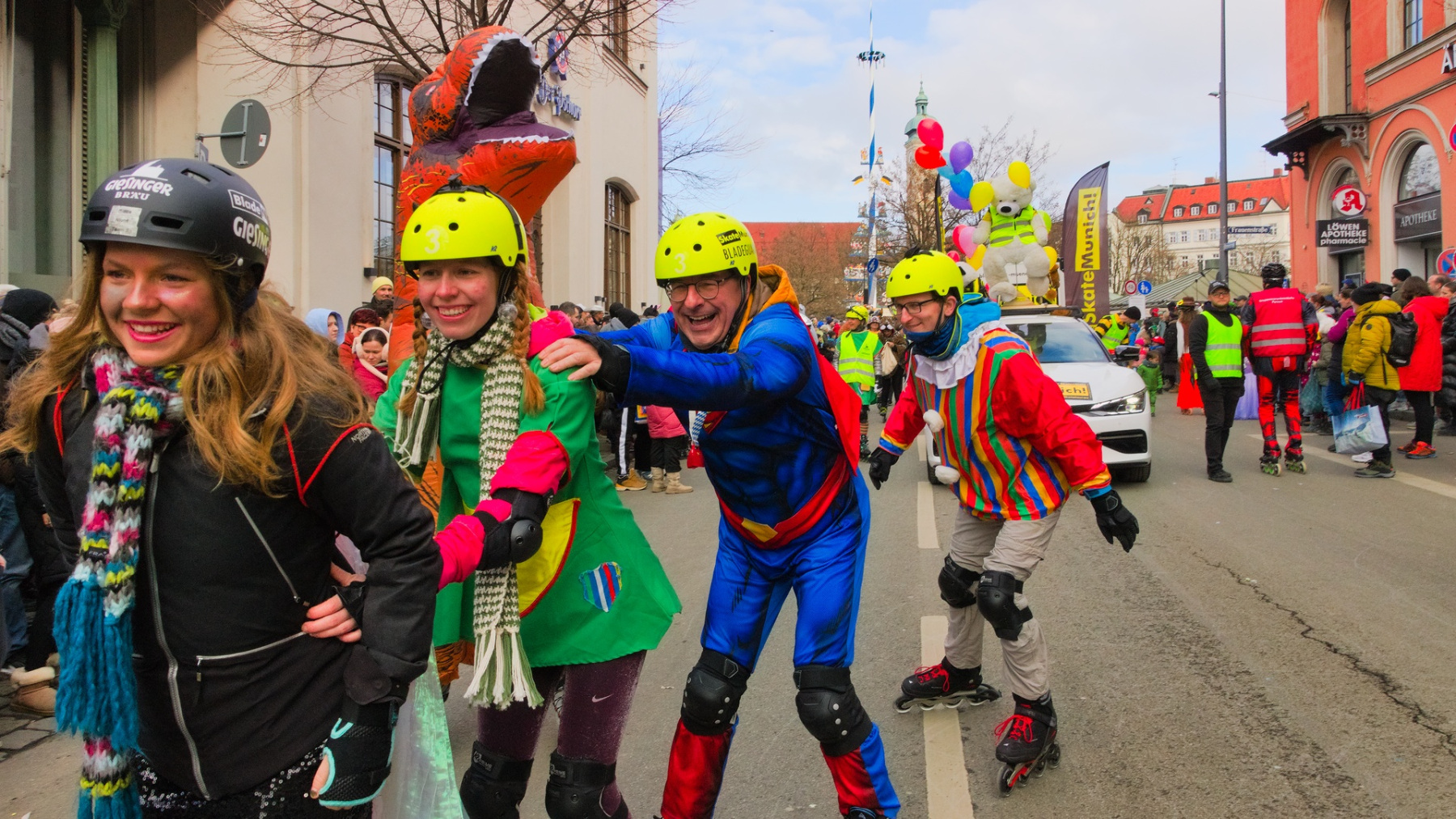Zirka 30 SkateMunich! e.V. -Faschings-Skater und Begleitung durften auch dieses Jahr wieder beim Faschingsumzug der Damischen Ritter umher rollen. Es war ein riesiger Spass für alle und wir freuen uns auch schon auf die nächsten Veranstaltungen.